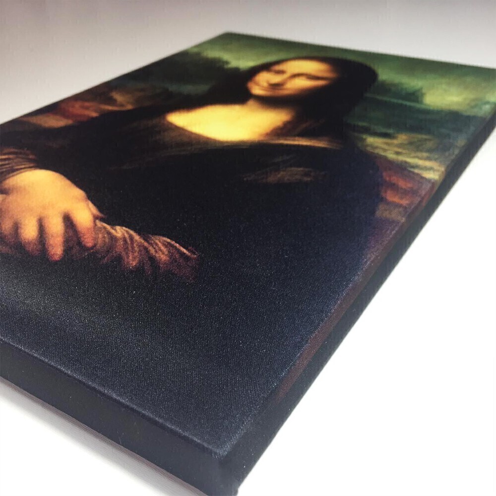 As laterais da tela são recobertas com uma borda preta ou com a própria imagem de acordo com a preferência do cliente, sem a necessidade de moldura.